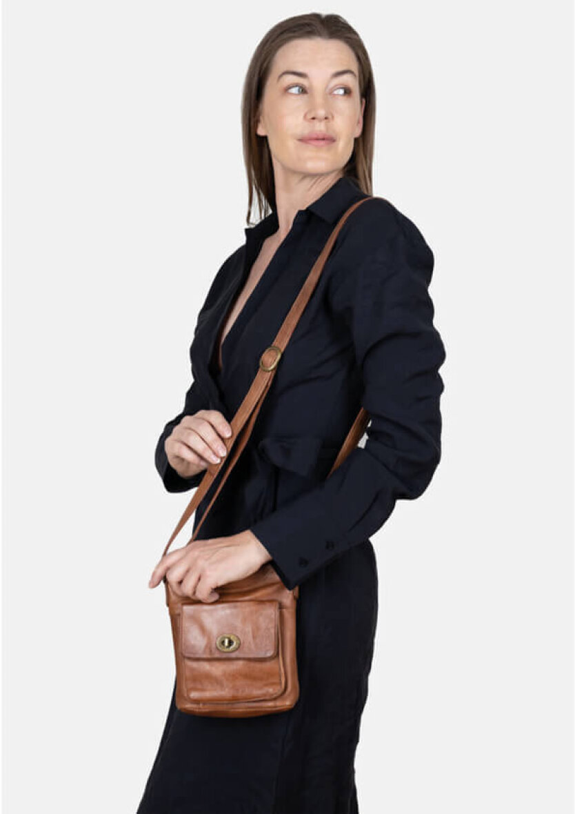 Kay Small er den populære Kay Urban model i en mindre variant. Flot håndlavet crossover taske i en flot valnød farve. Tasken er lavet i 100% blød læder kvalitet.