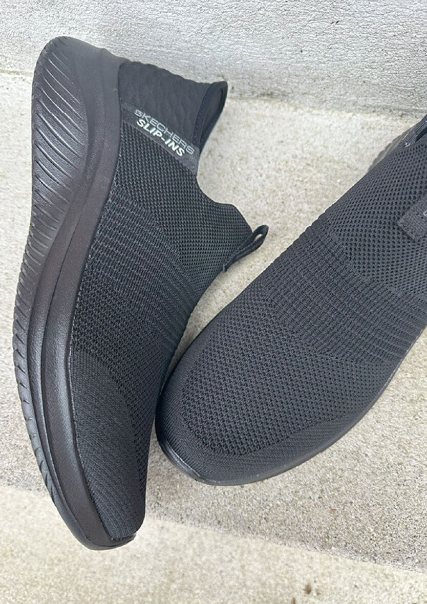 Smarte sorte hands free slip-ins fra Skechers. Skoen er lavet i blødt vævet mesh tekstil med stretch fit, så den skoen tilpasser sig foden. Med den smarte nye Slip-ins teknologi får du en sko med en god fast hælkappe og polstring der former sig til hælen og giver en god stabilitet. Skoen er lavet med et håndfrit hældesign, hvilket betyder at du kan træde ind i skoen uden at bruge dine hænder.