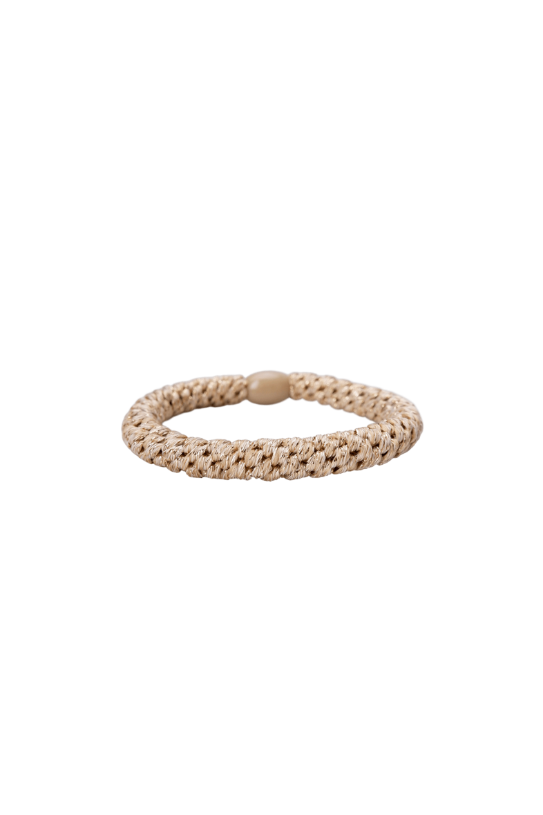 Super flot hårelastik fra Black Colour i en flot guld farve med glimmer tråde. God og solidt elastik til håret. Kan også sagtens bruges som et pynte armbånd.