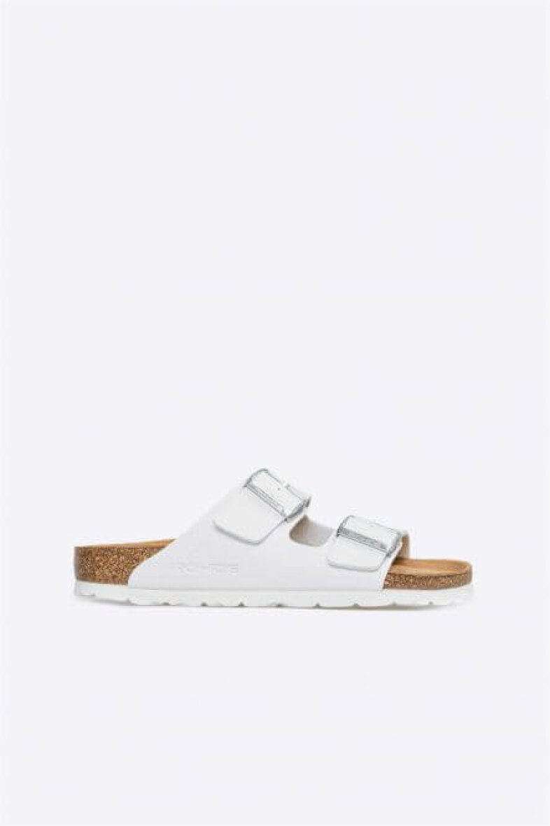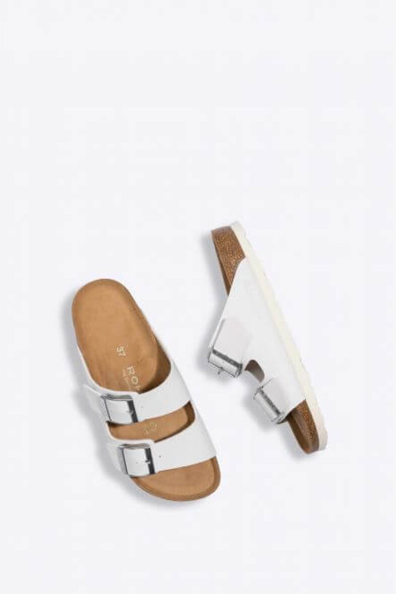 Klassisk slipper sandal fra Rohde. Alba sandalens overdel er lavet i hvid imiteret skind. Sandalen er med to regulerbare remme med spændeluk, så den er nem at justere. Sandalens indersål er en skind sål som sikrer en god komfort.