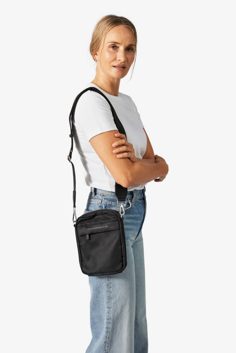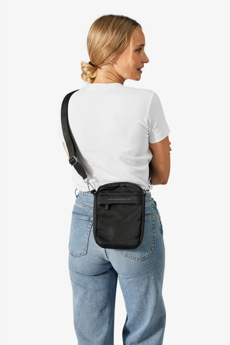 Tasken er fremstillet af slidstærke materialer af genanvendt nylon og lavet i et tidløst design, er denne taske både en pålidelig ledsager og et stilfuldt valg til enhver lejlighed.