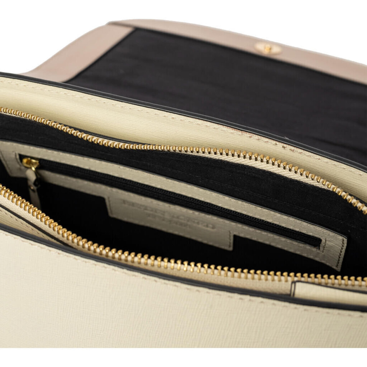 Febe er lavet af high-end Saffiano læder. Tasken er med et åbent rum med lynlås lomme indeni. Taskens store flap lukkes med magnetknap.