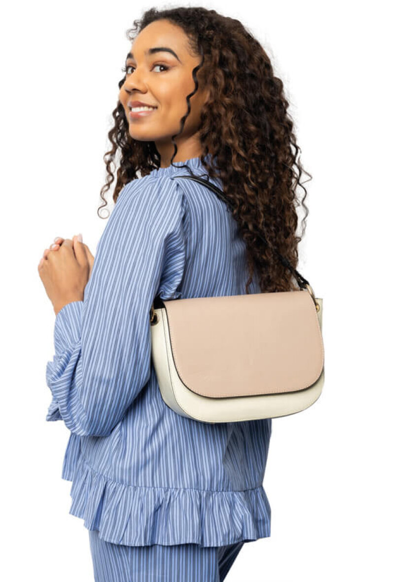 Flot og feminin taske i modellen Febe fra Re:Designed. tasken er lavet i et tidsløst design i en skøn farvekombination af Beige og hvid.
