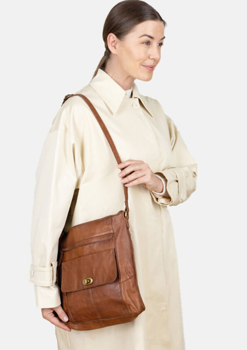Super flot håndlavet crossover i modellen Leknes Urban taske. Tasken er lavet i et flot og tidsløst design i den moderne valnød farve.