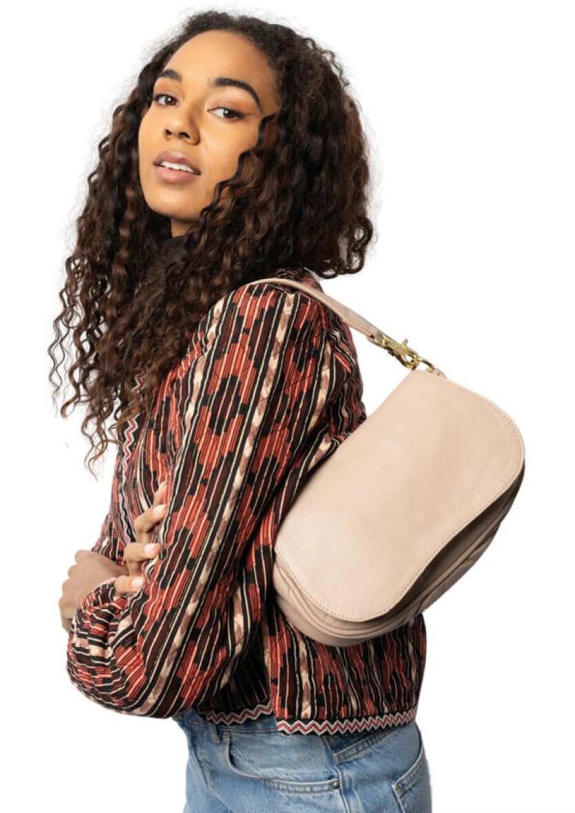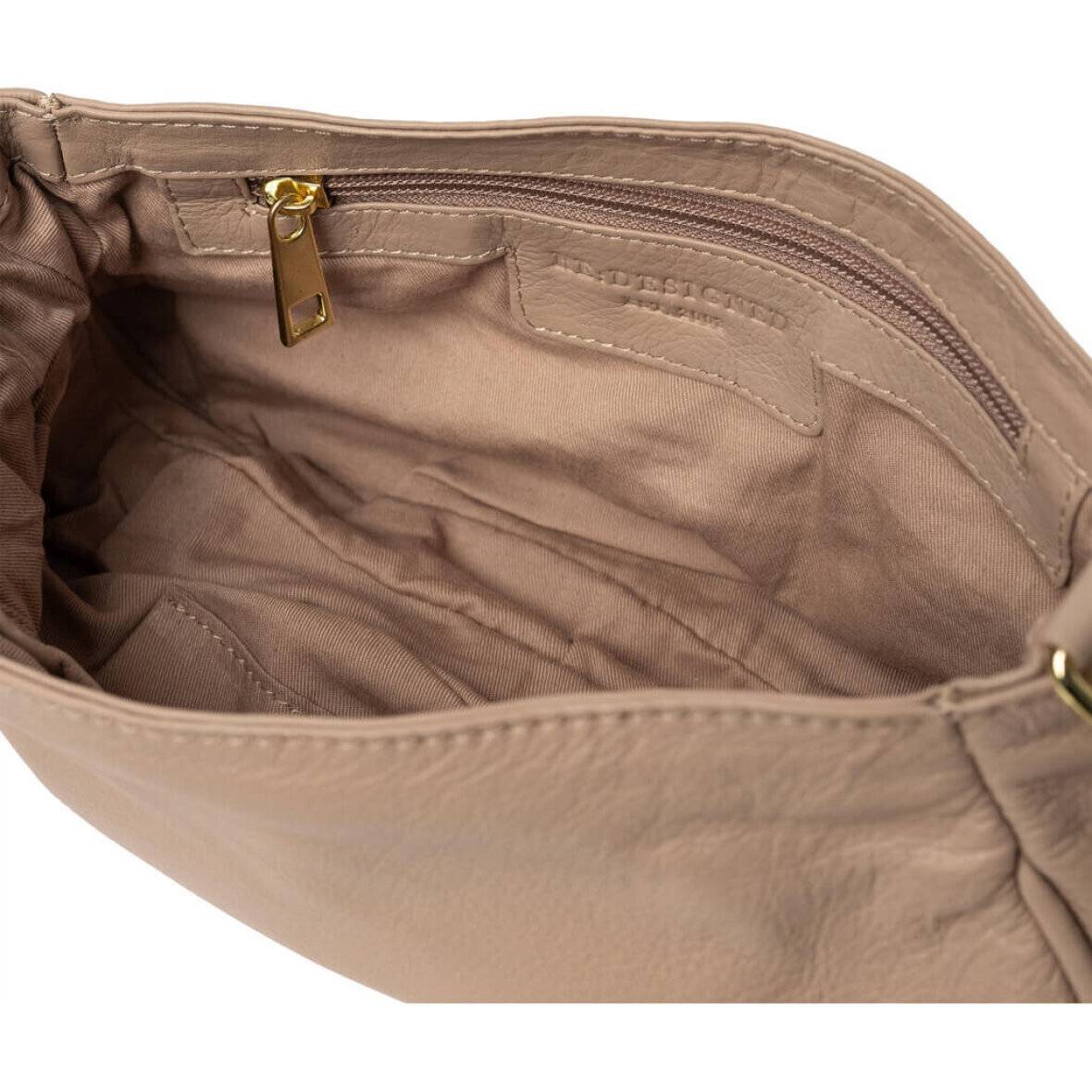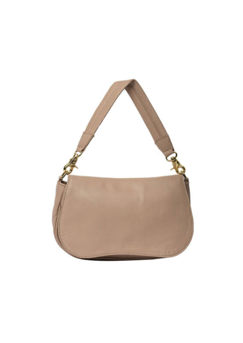 Flot og feminin taske i modellen Fausta Small fra Re:Designed. Tasken er lavet i et tidsløst design i en flot beige farve (Taupe). Tasken er lavet i en lækker blød 100% skind kvalitet.