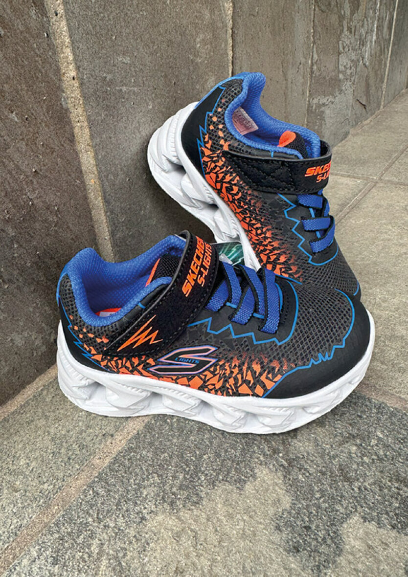 Super seje drenge sneakers fra Skechers i modellen Vortex 2.0 - Zorento. De smarte blå letvægts sneakers er lavet i et fedt design med orange detaljer.