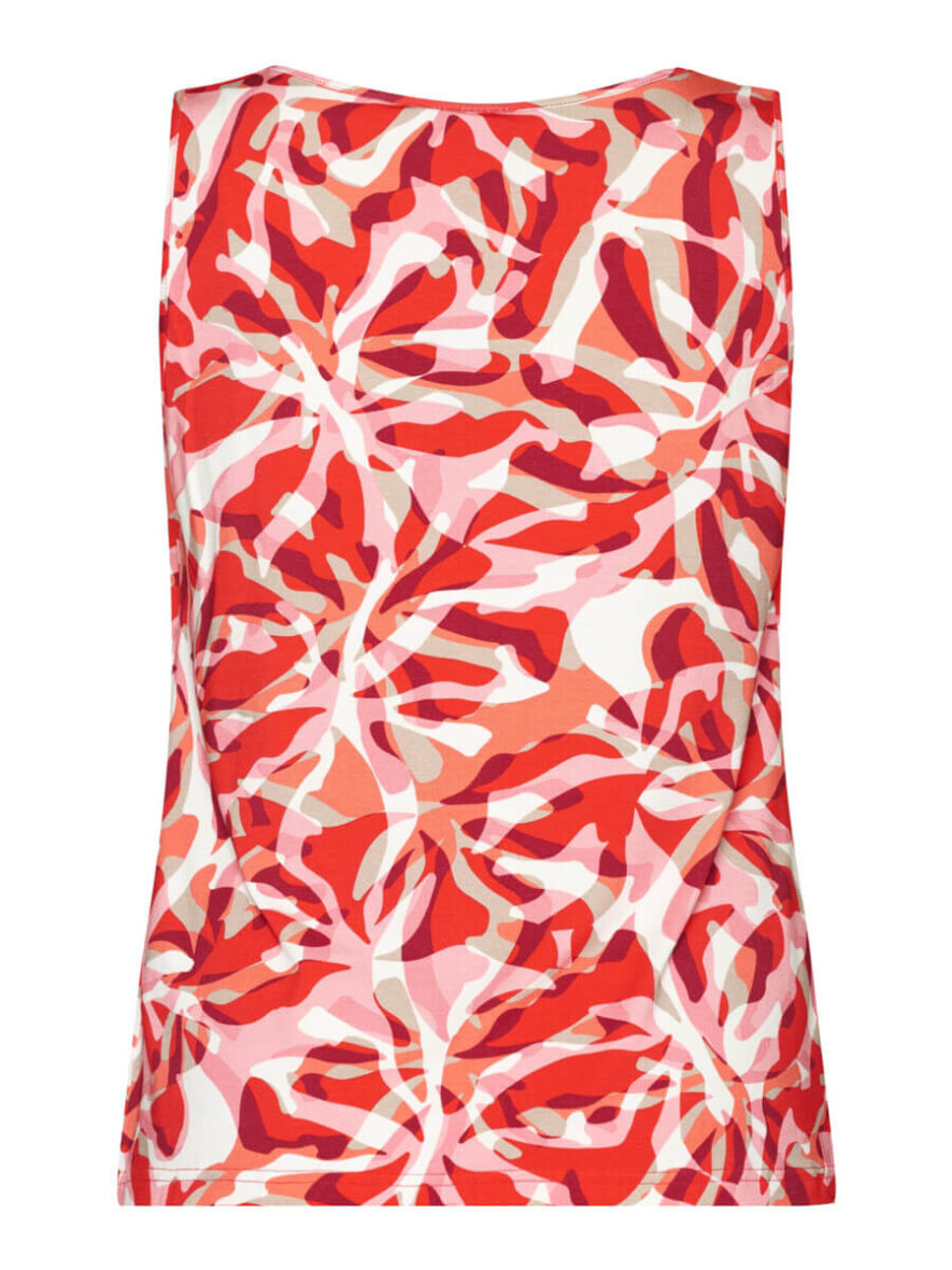 Flot og farverig top fra Brandtex. Toppen er lavet i et grafisk print i røde toner.