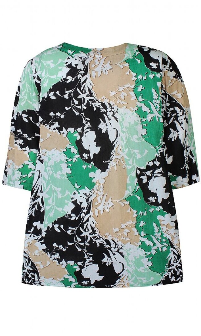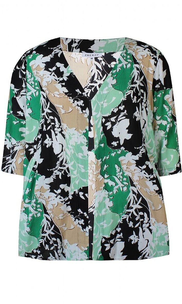 Flot og feminin bluse i et skønt blomstret print fra Zhenzi. Blusens flotte print er lavet i en farvekombination af grøn, beige og sorte nuancer.