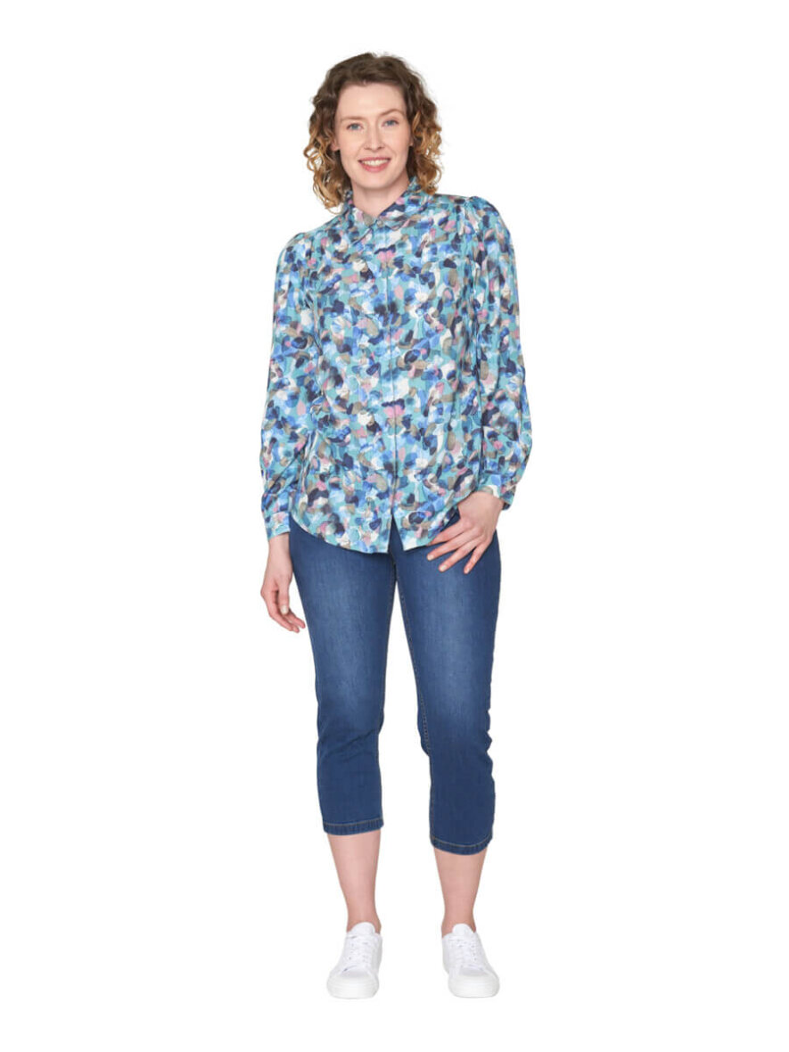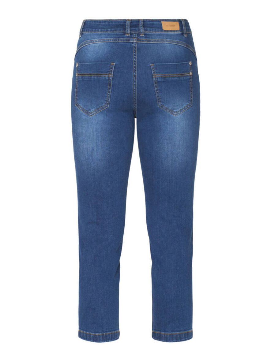 Komfortable korte bukser i modellen Madelaine fra Brandtex. Bukserne er lavet i en flot mellem blå denim farve, som nemt kan styles til enhver farve.