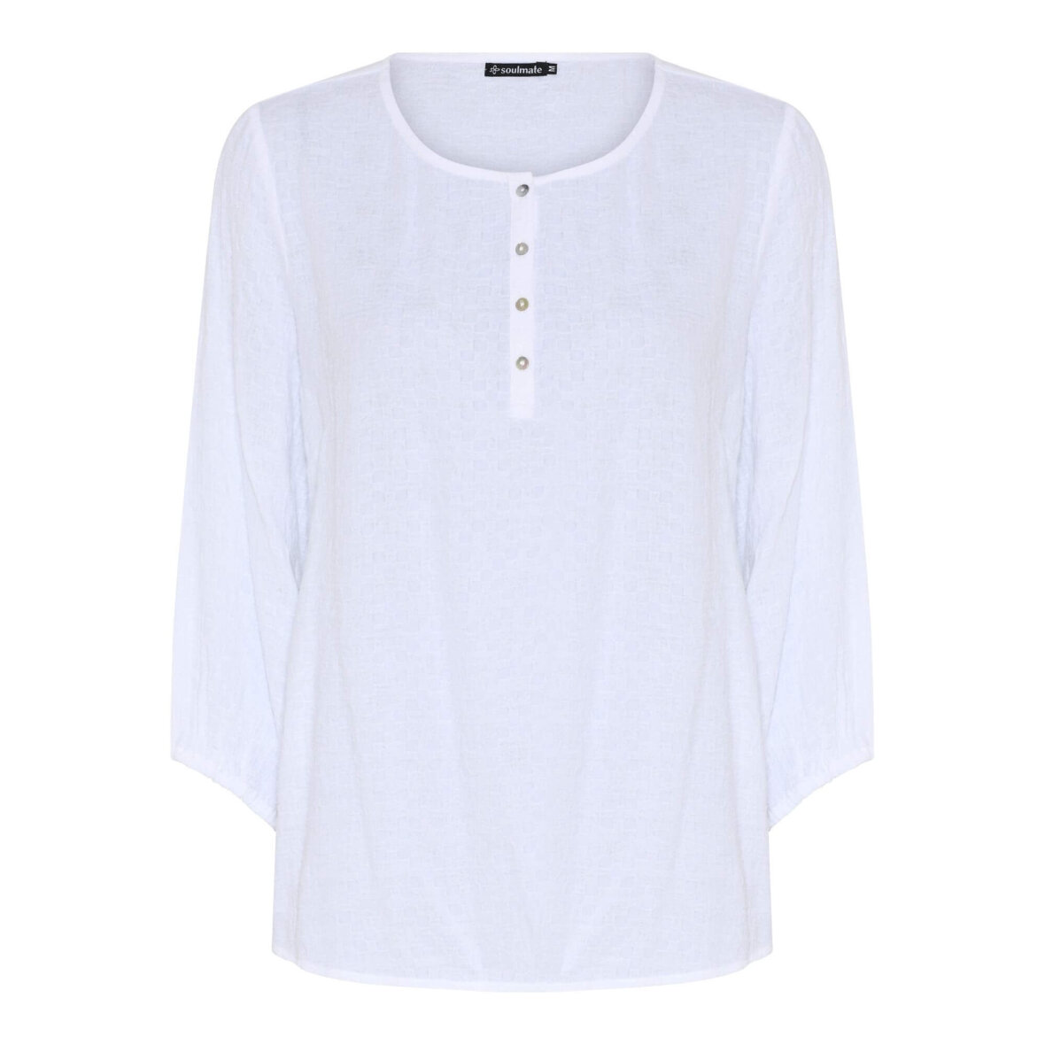 Flot hvid bluse i et enkelt design fra Soulmate. Blusen er lavet i et enkelt design med let struktur i stoffet.
